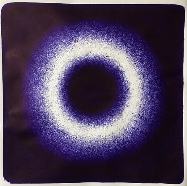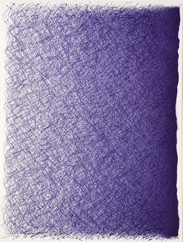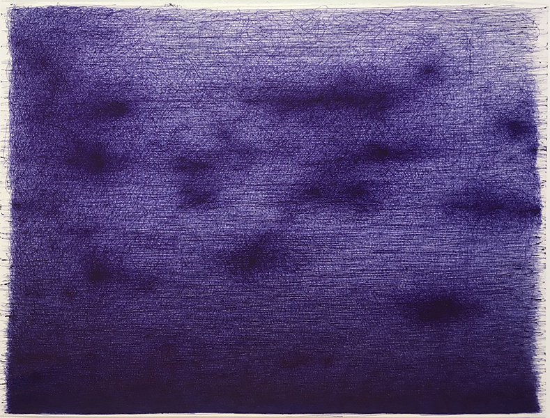 As cultural object the ballpoint pen is closely linked to written language; the formal language of bureaucracy (files, forms and applications) and the informal language of everyday life (grocery lists, love letters and post-it notes). Substituting linguistic sense-making with accumulative mark making these drawings explore the visual potential of the ballpoint pen.