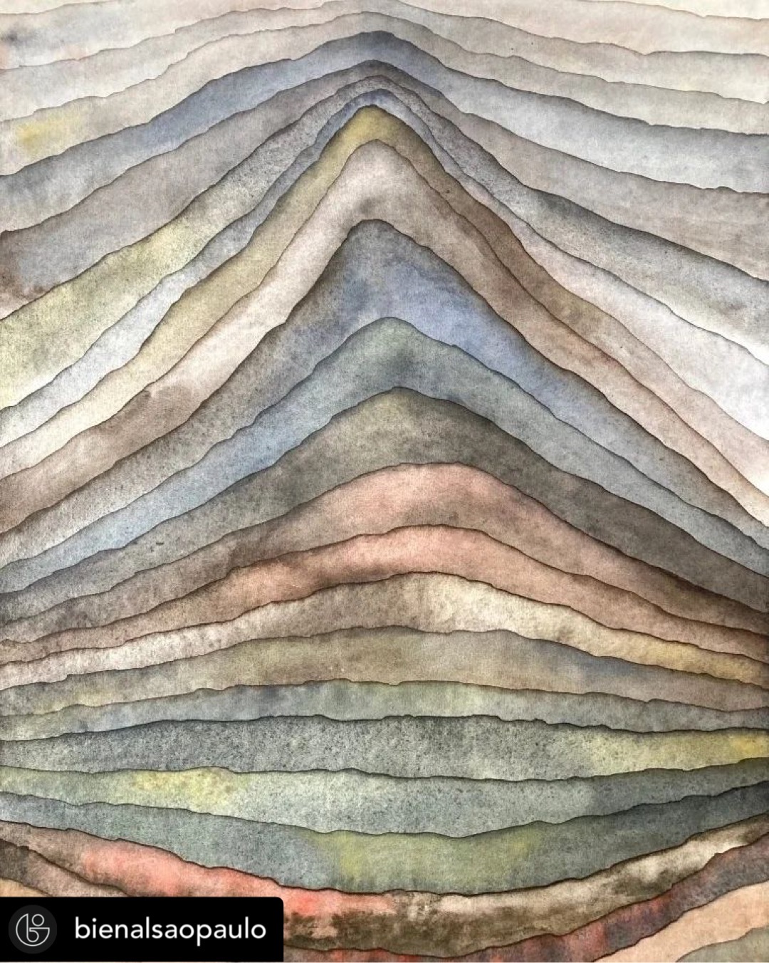 “The abstract, sedimentary landscapes in Mikael Hallstrøm’s series are inspired by imaginaries of geology, accumulation and distance […] These watercolors can recall sandstorms, mountains, cliffs with their sedimented particles, and even sunlight falling over the skyline. [… The Danish artist] creates with fire, ballpoint pens, and inks, sometimes letting gravity itself act on the flow of pigments.” (read more)