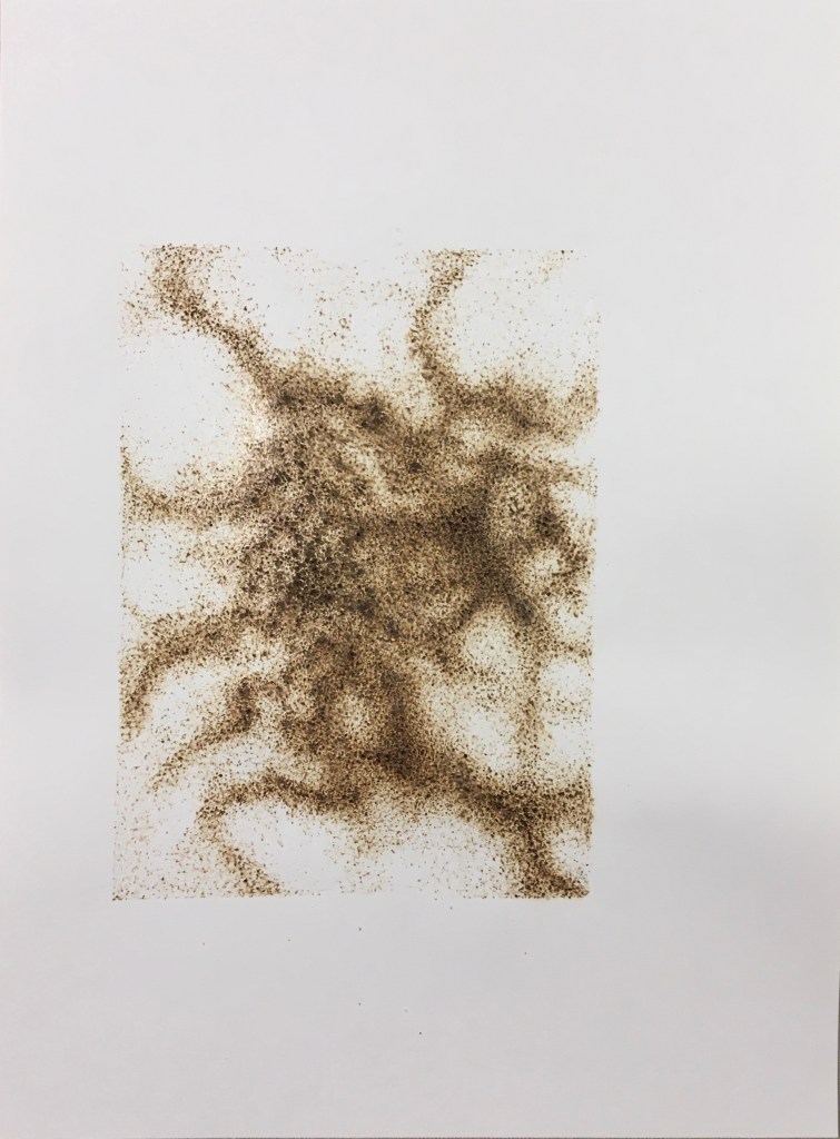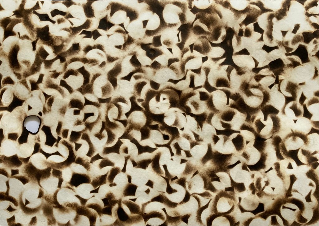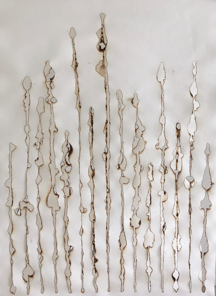 The burnt drawings are the result of processes of incineration and scorching. Using sunlight, electricity or fire to heat specific areas of the paper to the point of destruction, these drawings are based on removal of matter instead of addition.